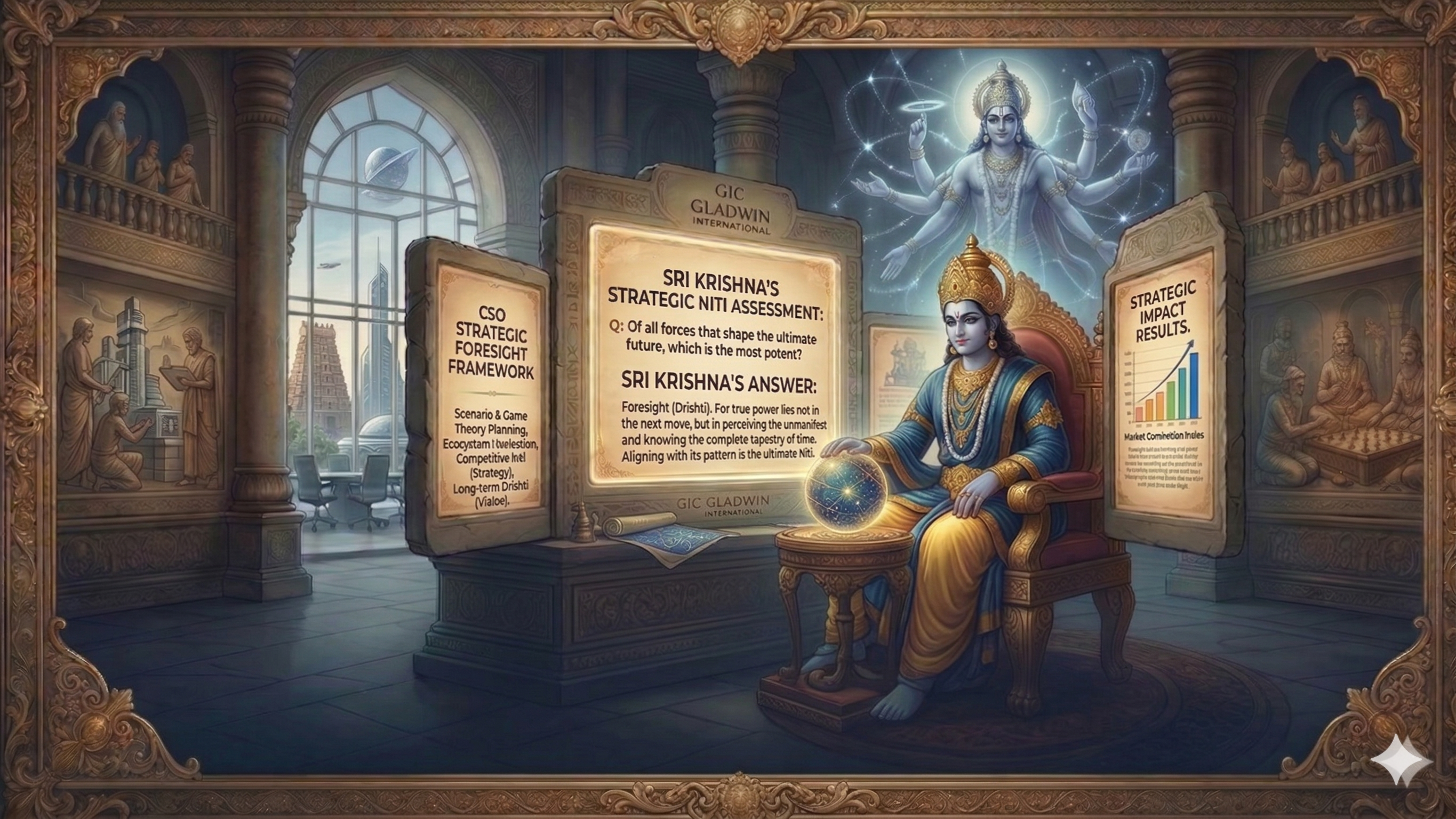 Krishna — The Strategist Who Sees Ten Moves Ahead. Gladwin International CSO Practice.