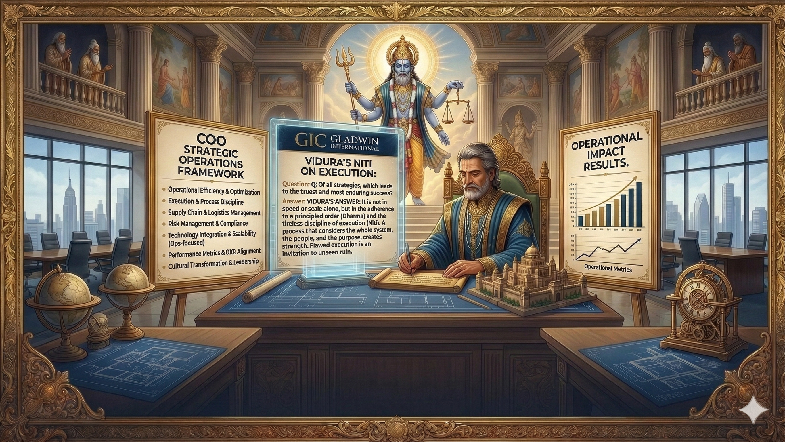 The great organisations of any era are not remembered for their most brilliant strategies. They are remembered for the reliability of their execution — the decade-by-decade accumulation of things done right, on time, without drama, by people who treated operational discipline as a personal commitment rather than a job requirement. Vidura built that culture in Hastinapur for three generations. The kingdom collapsed when it stopped listening to him — not when it ran out of warriors. The Chief Operating Officer Gladwin International will find for you is the one who builds the operational culture that outlasts their tenure, who makes the organisation more capable by the time they leave than when they arrived, and who treats every operational commitment as a debt of honour that must be repaid in full.